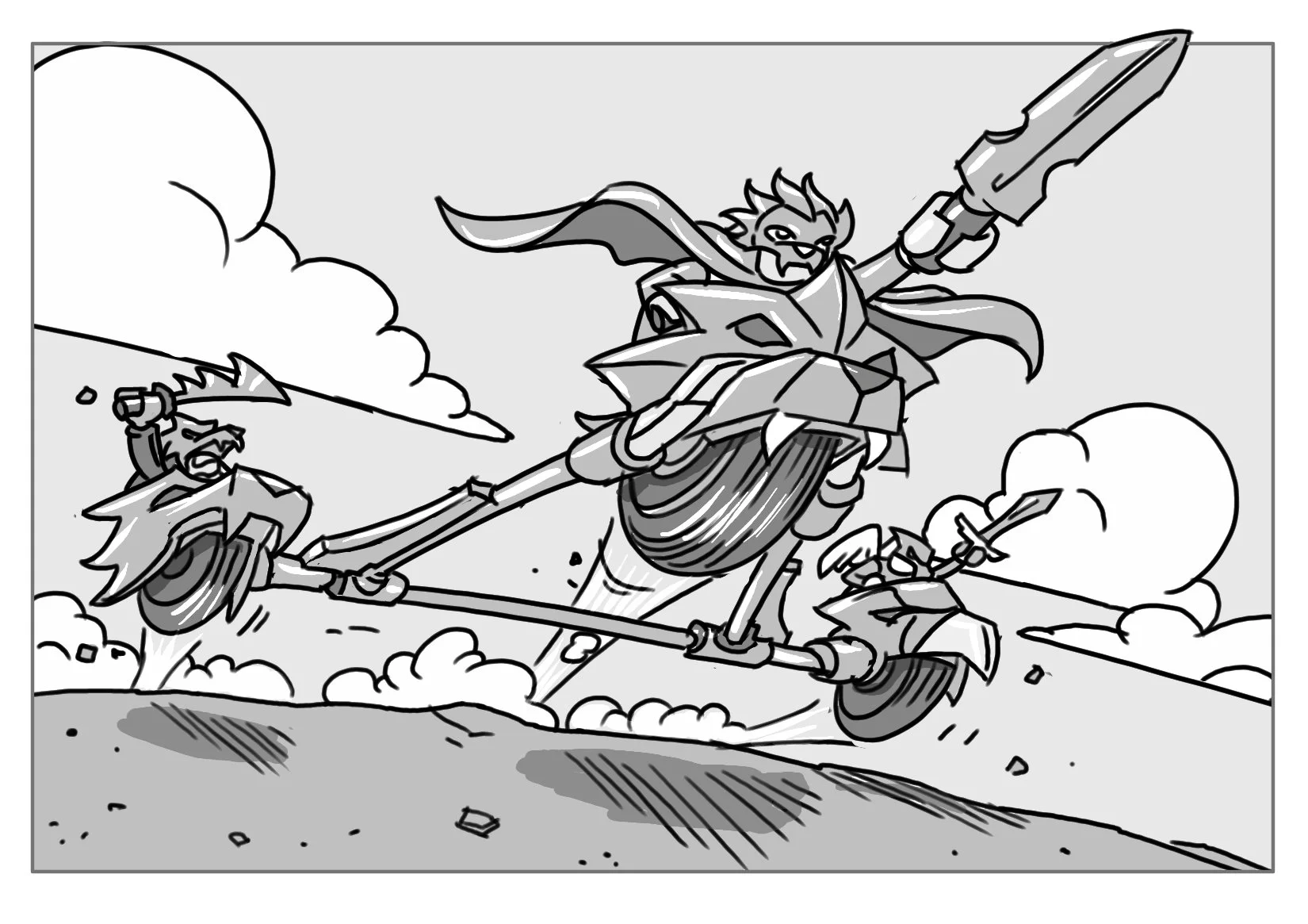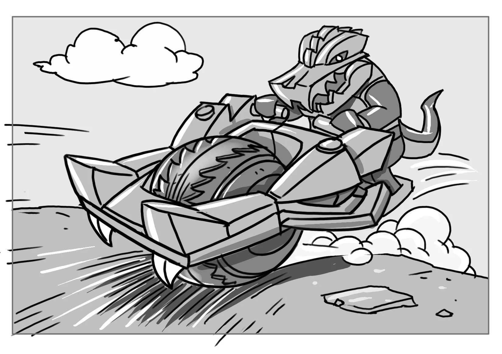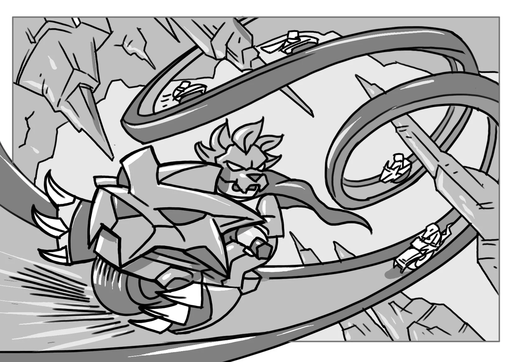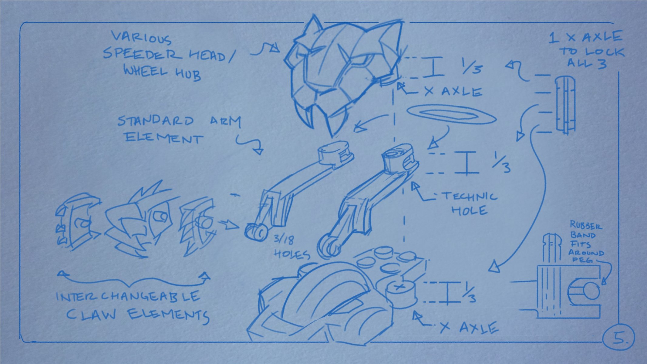 Much like the spinner in LEGO Ninjago, speed and battle were core elements of Chima, inspiring the development of a speeder/spinner bike for the property's social game. The gallery below offers just a small glimpse into the design and engineering process behind the Speedorz. I was merely one of many contributors whose concept work helped shape the final design.