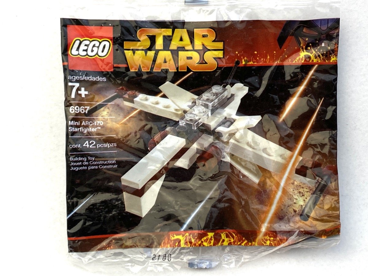 6967 | Mini ARC-170 Starfighter - The Arc Starfighter from Episode III was a mini model designed for LEGO's "promotional" polybag line.