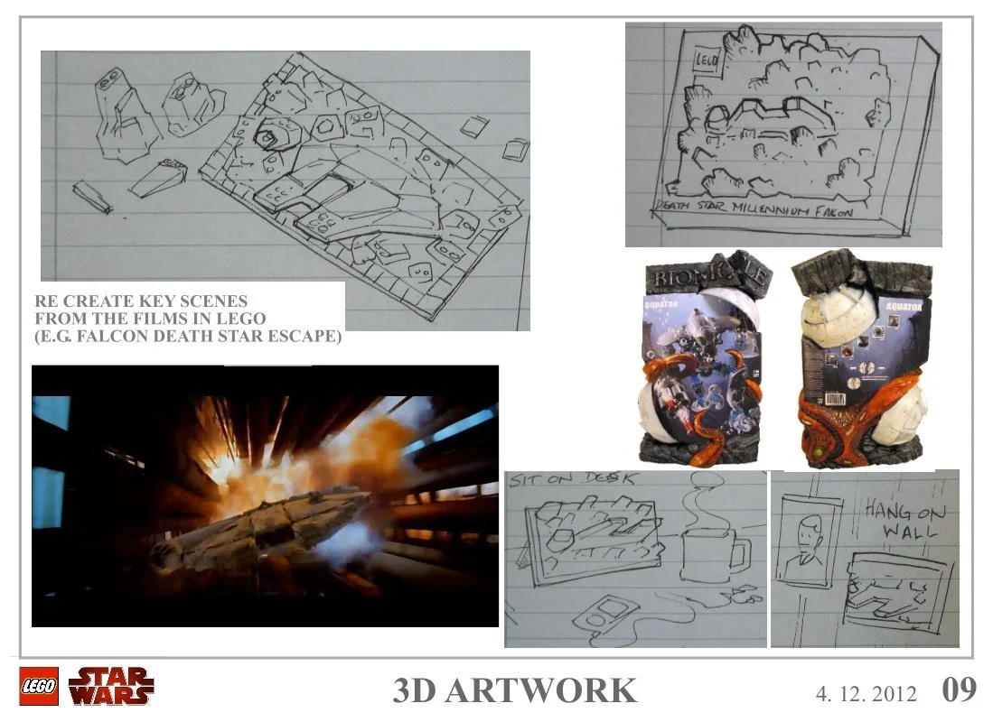 Over the years, I’ve created character, vehicle, and environment art for the LEGO Star Wars universe, as well as contributed brainstorm ideation for new product lines like the Microfighters and Microfigs sets.
